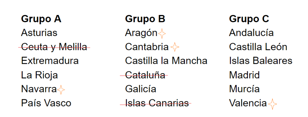 Note that if you mark Castile La Mancha, Valencia, Catalonia, Navarre, Cantabria, or the Canary Islands you’re wasting your choices depending on where you’re from.