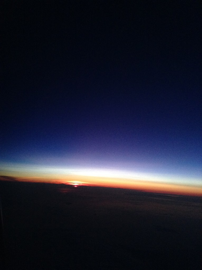 Dinner came and people started to get jealous. Fortunately (for them) it wasn’t anything to write home about. Literally boiled unseasoned chicken breast on a bed of salty rice and some boiled veggies on the side. The star was a shredded carrot, raisin and mayo salad and, of course, the brownie. A couple hours before landing we got a bagel sandwich.