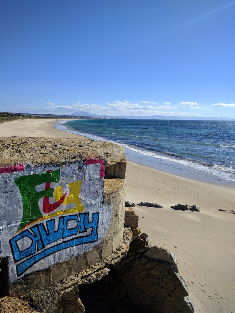 We ate on an old bunker overlooking the now distant city of Tarifa.
