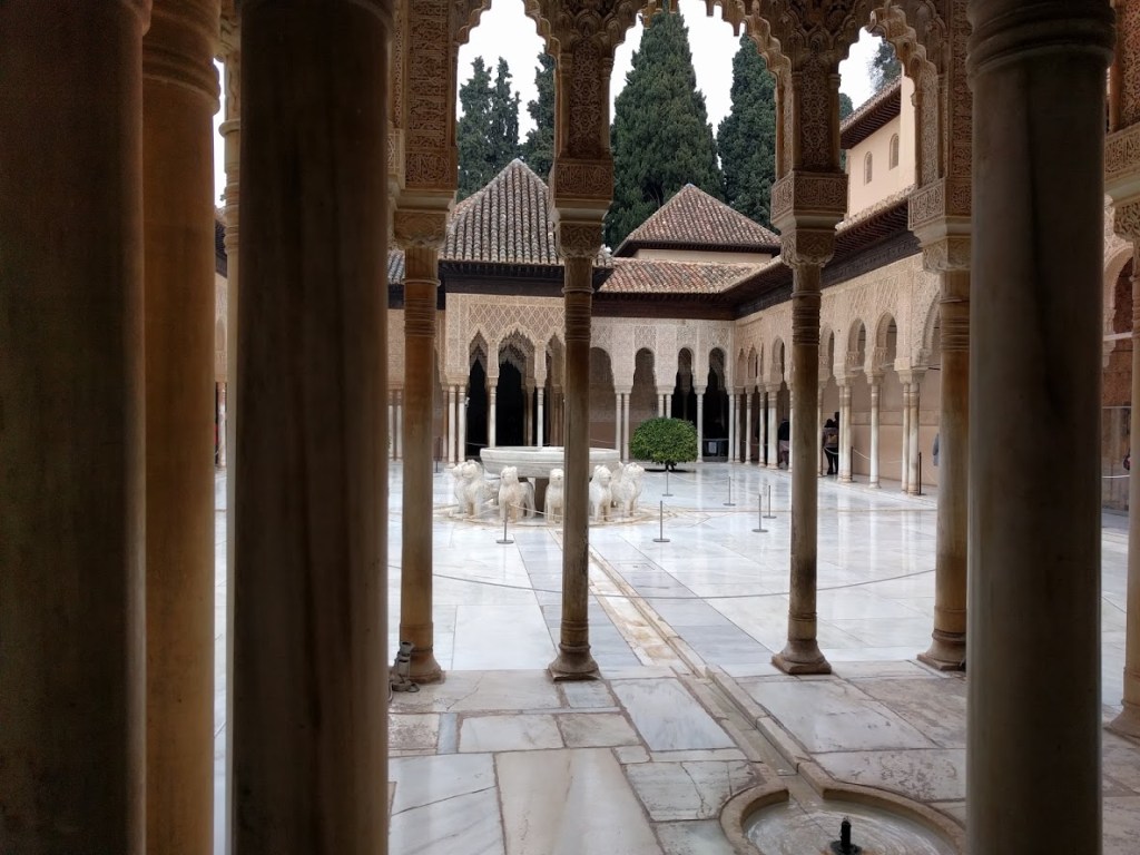 Are castles and palaces art? Yes. But when Lonely Planet says “the courtyard layout, using the proportions of the golden ratio, demonstrates the complexity of Islamic geometric designs – the varied columns are placed in such a way that they are symmetrical on numerous axes.” They are only focusing on the art – not the rich history of the Alhambra.