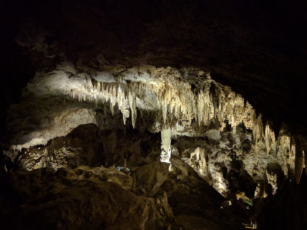 We first headed to Carlsbad Caverns NPS. Like Mesa Verde you have to drive up, up, up for a while. The cool thing was realizing you were going to walk (or take an elevator) back down (but inside the earth). We weren’t sure if we wanted the elevator but decided to hike it. It’s a paved walking path that just descends down switchbacks (not really a “hike”). There’s a really neat part where you walk down and just see a gaping hole: