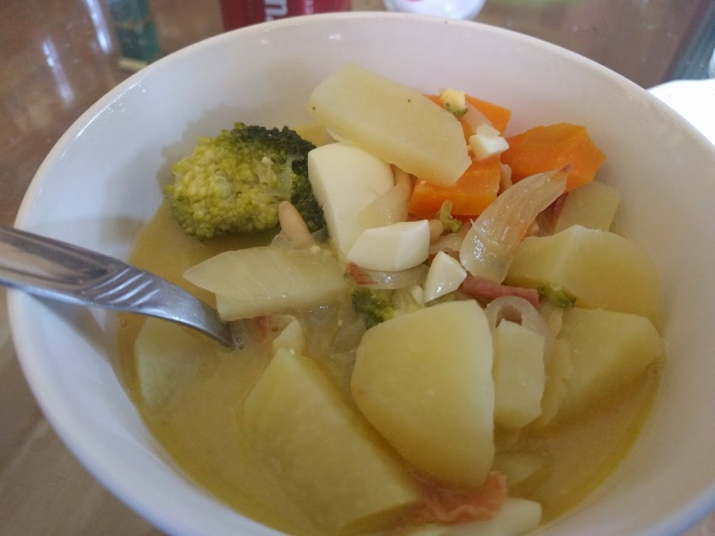 With more hard boiled eggs we made it the next day with potatoes, carrots and broccoli (the only veggies we had on hand). Still great.