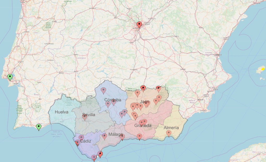 Of those places almost all were in the Autonomous Community of Andalucia.