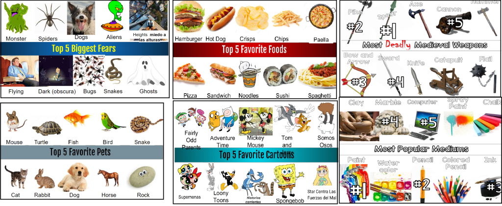 You give students a list (hopefully with pictures) of 10 or so things. They have to guess what the top 5 out of those 10 options are the best.