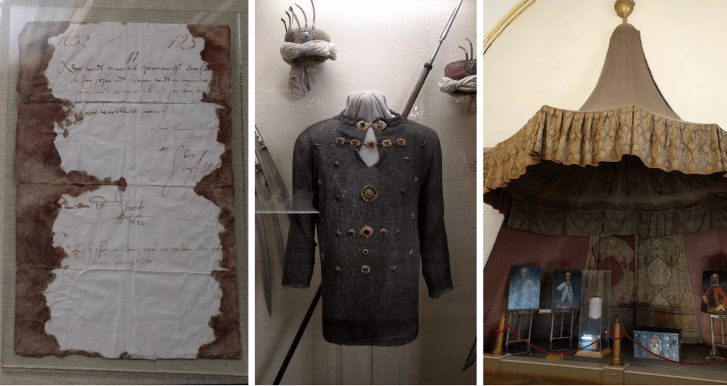 The whole upstairs had two rooms to choose from. The first room had the Thirty Years’ War and Turkish/Ottoman Invasions, the Spanish War of Succession, Austrian Succession and some more Turkish wars. The Thirty Years’ War room had one of the only remaining Turkish uniforms and parts of the Turkish commanders tent found after a battle. There was a paper written in the 1600s that had the battle plans for Lützen, the man carrying it was mortally wounded and you could see the blood stains on it still. It’s amazing that paper survived at all.
