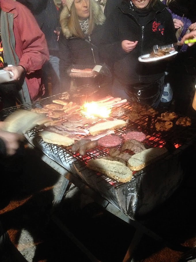 There were people everywhere. You had to squeeze through huge groups. Anyone claustrophobic would’ve died. It was an absolute mass of people. There were many grills all over the place. We picked one that wasn’t totally full of meat and slapped our sausages on it. Everyone grills their meat then wraps it in a piece of bread. So we did the same thing. We haven’t had grilled meat in years and it was really good.
