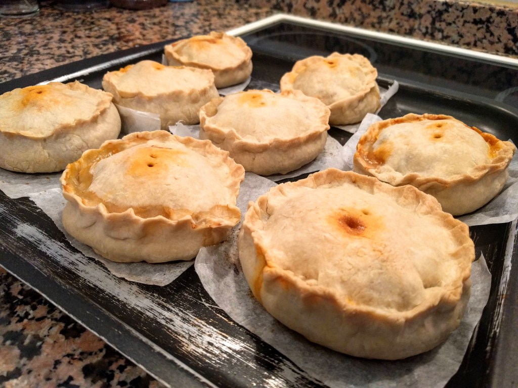 “Empanada” is a general term you see a lot with Spanish dishes that can mean many different things. Literally, it means breaded, (or enbreaded in, surrounded by bread). So sometimes you’ll see “Pollo Empanada” on a menu, and it’s just a breaded chicken breast. We actually made this mistake in Puerto Rico, we wanted a savory pastry but got Shake N Bake.