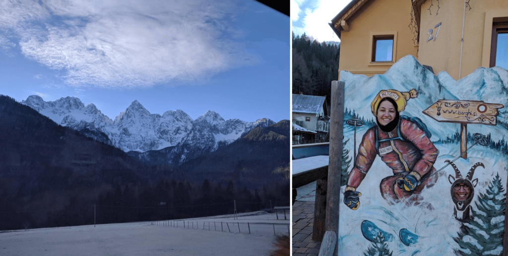 Our final adventure in Slovenia was in and mostly around Kranjska Gora. It’s a fairly famous ski town and we had heard it was great for New Years Eve celebrations. Mostly we went to see the gorgeous Julian Alps. To clear it up -the Alps go over 8 countries and 750 miles (1,200 km). So everyone has different ways of referencing The Alps (Swiss Alps, French Alps, Central, East Central, etc.) The Alps do dip into the north western corner of Slovenia and these become the outskirts of the alps known as the Southern Limestone Alps of which make up the Julian Alps. Are they part of the alps? Yes, but they’re a part of a part of the alps.